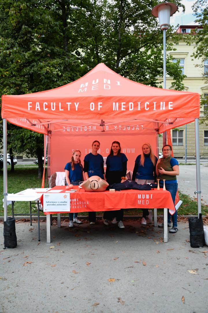 Na akci se představily i studentky studijního programu Porodní asistence z Ústavu zdravotnických věd LF MU v Brně. Návštěvníkům přiblížily, jak probíhá jejich studium a jak jsou budoucí porodní asistentky připravovány na své povolání.